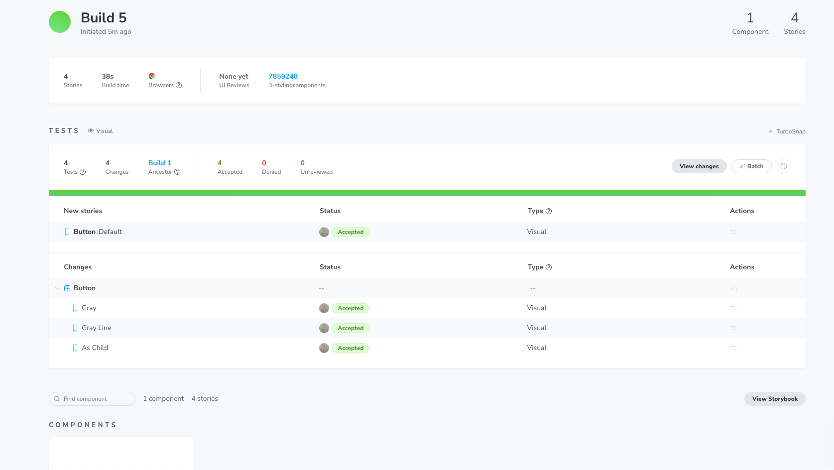 저렇게 하고나면 chromatic 사이트가 열리고 아래와 같은 화면을 볼 수 있다.