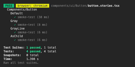 이후 pnpm run storybook:test를 수행하니 정상적으로 test가 동작하였다.