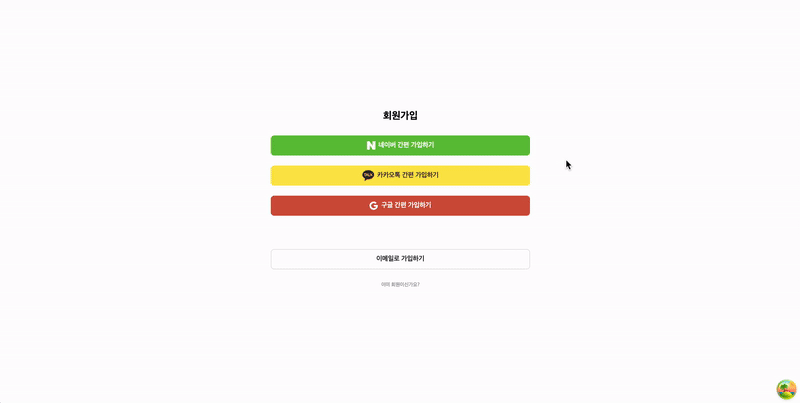 아래 이미지에서 카카오톡 간편 가입하기 버튼을 누르면 handleKakaoLogin() 함수를 통해 카카오 로그인 페이지를 호출할 수 있도록 해주었다.